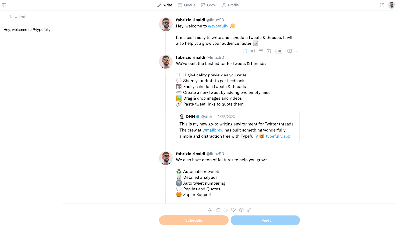 • Typefully, Twitter thread maker and analytics