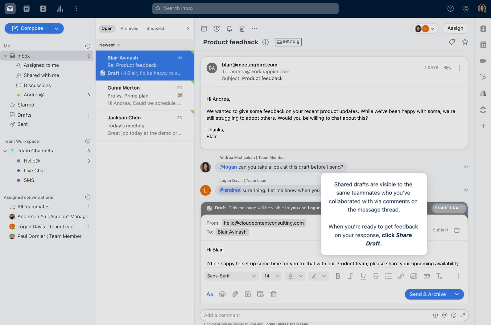 Once in the tour, prospects are guided through use cases step-by-step. And for each major feature, Front’s helpful pop-ups explain what it is, what it does, and why it is beneficial.