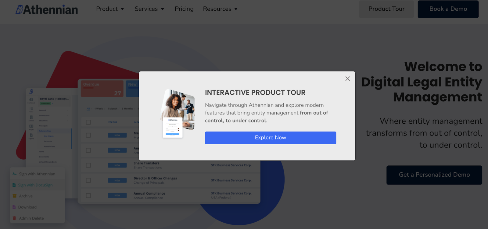 And after spending a few seconds on the home page, users get a pop-up encouraging them to take a guided tour.