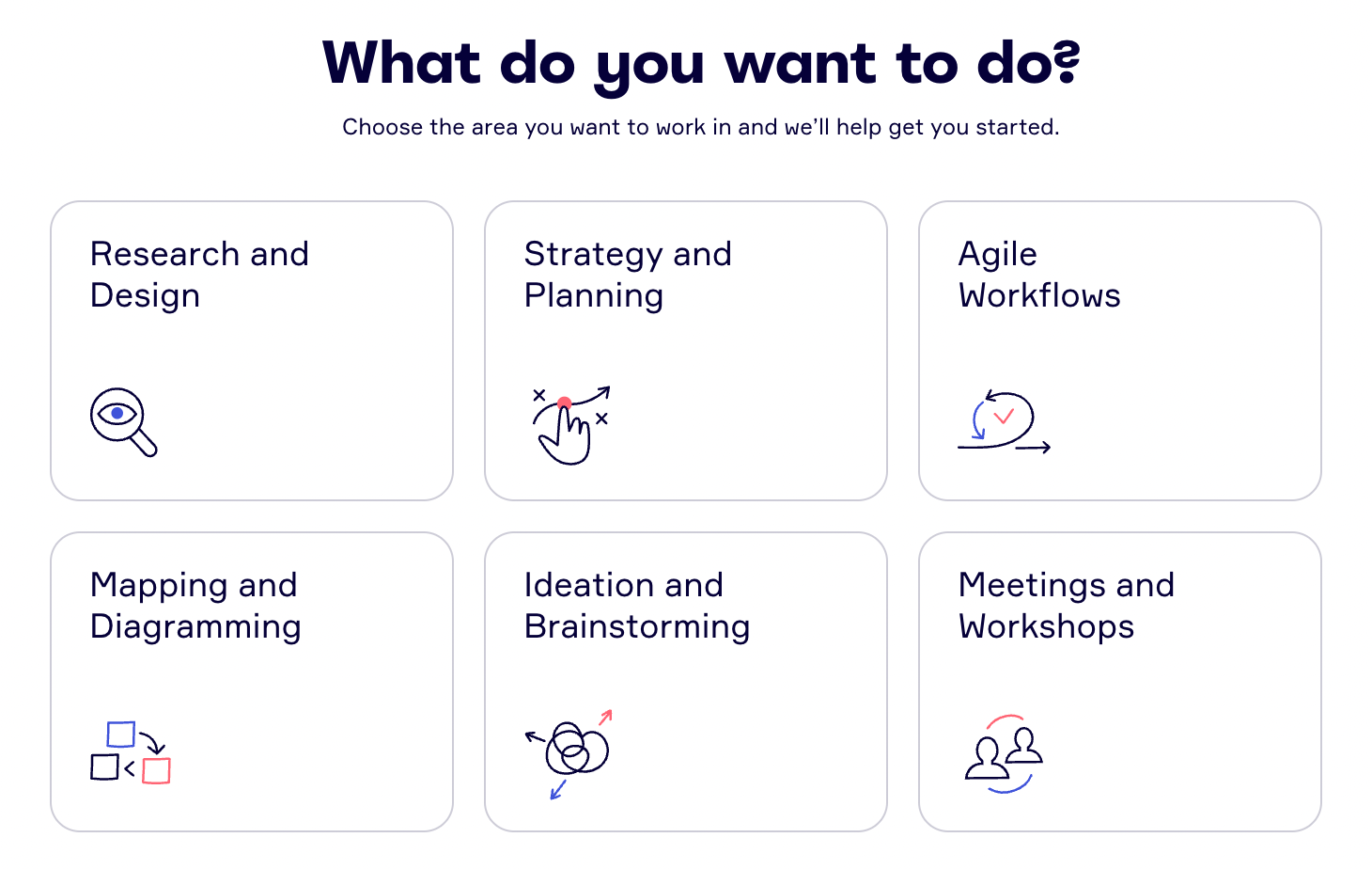 Miro is a fantastic example. When users sign up for Miro, they are asked what their main goal is, and they can choose from several options.