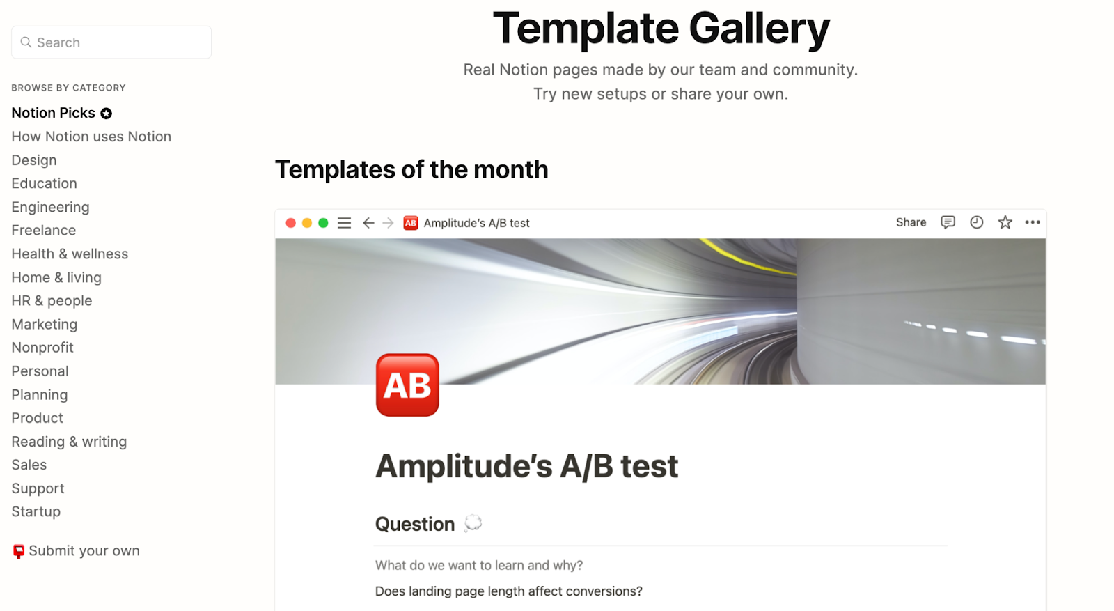 Notion does something similar, grouping free templates by function.